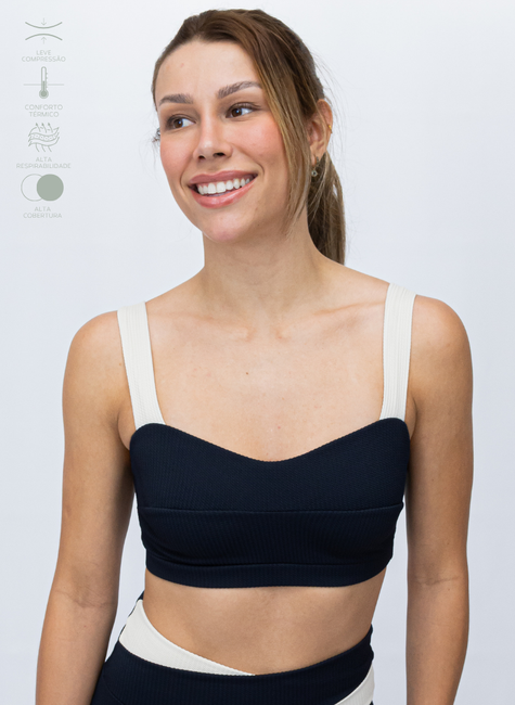 Feito para quem busca beleza, conforto e praticidade, o Top Oásis proporciona uma experiência única ao vestir. O tecido tecnológico garante toque agradável e respirabilidade, mantendo o corpo seco e confortável mesmo durante o movimento. As alças largas e recorte anatômico oferecem ajuste seguro e visual elegante. Sua alta cobertura confere confiança total em qualquer ocasião, enquanto o design bicolor adiciona um toque contemporâneo ao look fitness.