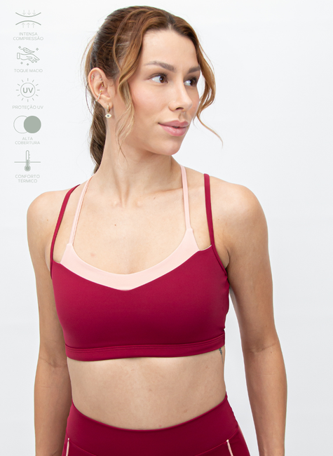 O Top Onda é a união perfeita entre estilo moderno e alta performance. Com design sofisticado em duas cores, ele oferece intensa compressão, toque macio e conforto térmico, ideal para quem busca sustentação e elegância nos treinos ou no dia a dia. Sua modelagem anatômica com alças duplas cruzadas nas costas garante liberdade de movimento e um visual marcante. Além disso, o tecido tecnológico com proteção UV faz dele uma escolha completa para quem não abre mão de qualidade e funcionalidade.